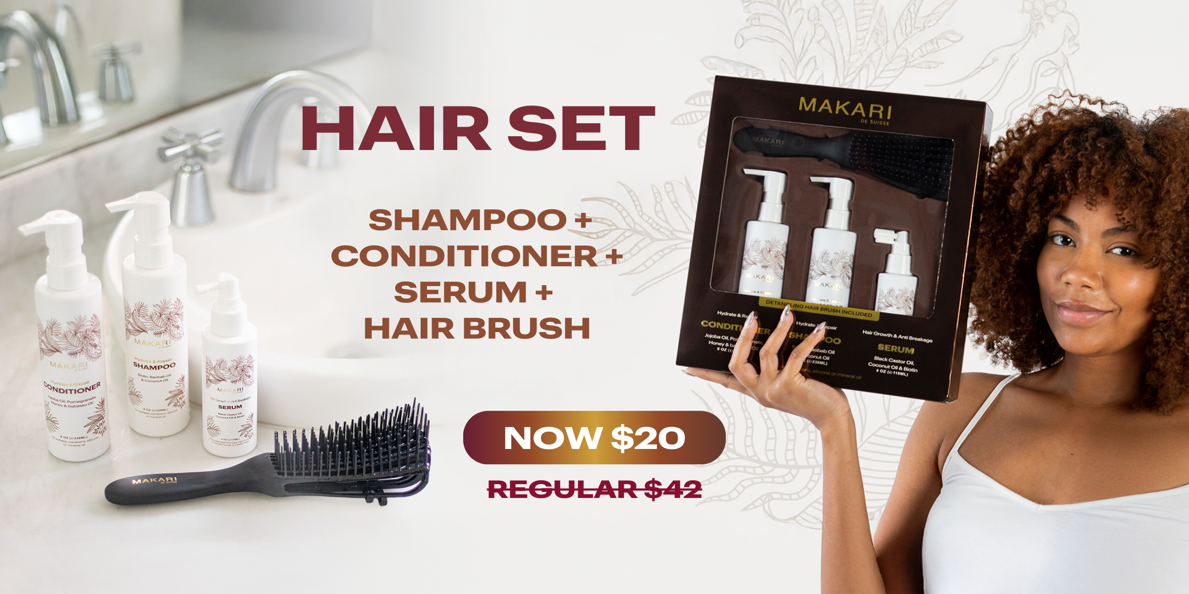 Hair Set Including Shampoo + Conditioner + Serum + Hair Brush
